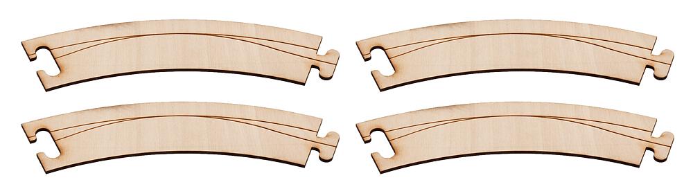 Laser-Street Fahrbahnbogen 45°. Mit diesen durch Zusammenstecken leicht zu verarbeitenden Straßenteilen, die bereits die Rille für den Fahrdraht enthalten, lassen sich unterschiedliche 1- und 2-spurige Straßenverläufe bauen.