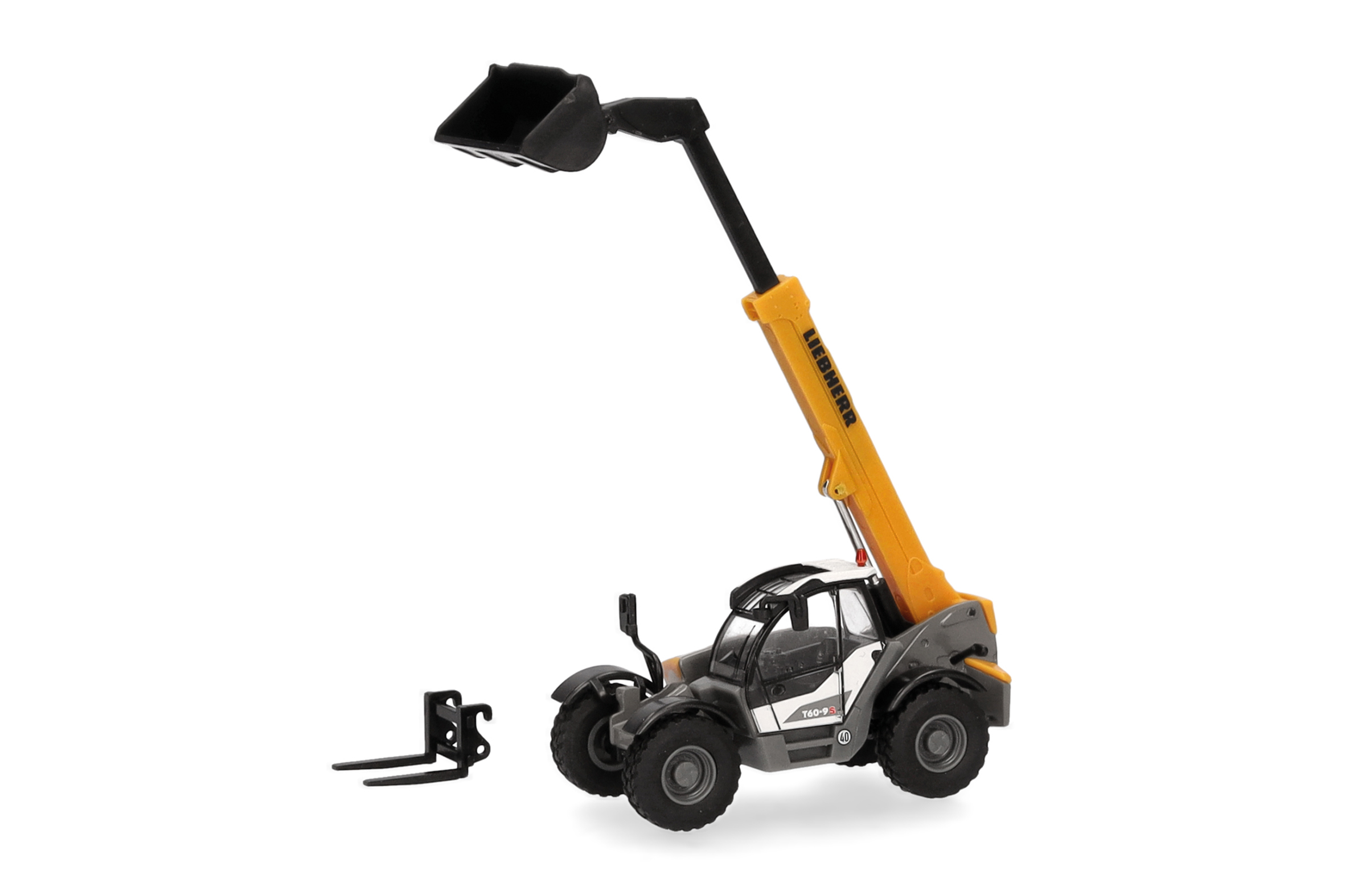 FORMNEUHEIT ! Wohl die größte Überraschung auf der Spielwarenmesse 2024 in Nürnberg waren am Herpa-Stand die ersten Handmuster des Liebherr Teleskopladers T60-9S. Ob Recycling, Holzindustrie oder Container-Umschlag: Wenn es gilt, Lagerflächen perfekt zu nutzen, spielt der Liebherr-Teleskoplader seine Stärken als leistungsstarke Universalmaschine aus. Neben der Schaufel wird dem Modell direkt auch eine Palettengabel beigelegt.
