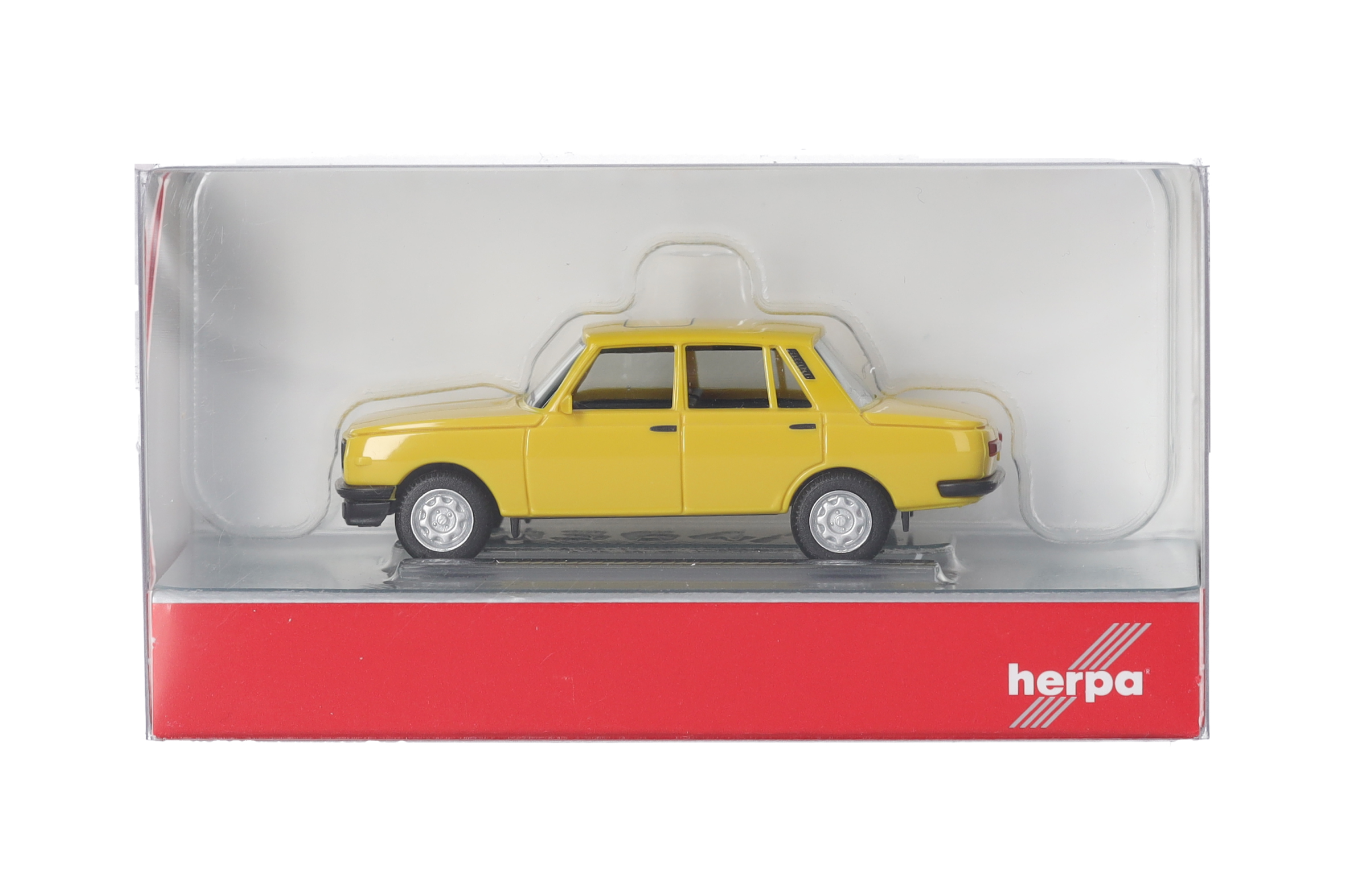In zitrusgelber Farbgebung mit aufgedruckter Schiebedachumrandung wird der Wartburg 353 der 1985er Bauform produziert.