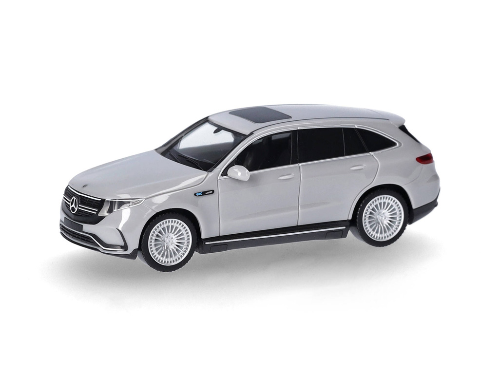 Der Mercedes-Benz EQC, ein voll elektrisch betriebenes Fahrzeug, ist beliebt unter den aktuelleren Fahrzeugen im Herpa-Sortiment. Das Fahrzeug ist in wundervollem signalgrau umgesetzt und detailreich 87-fach verkleinert.