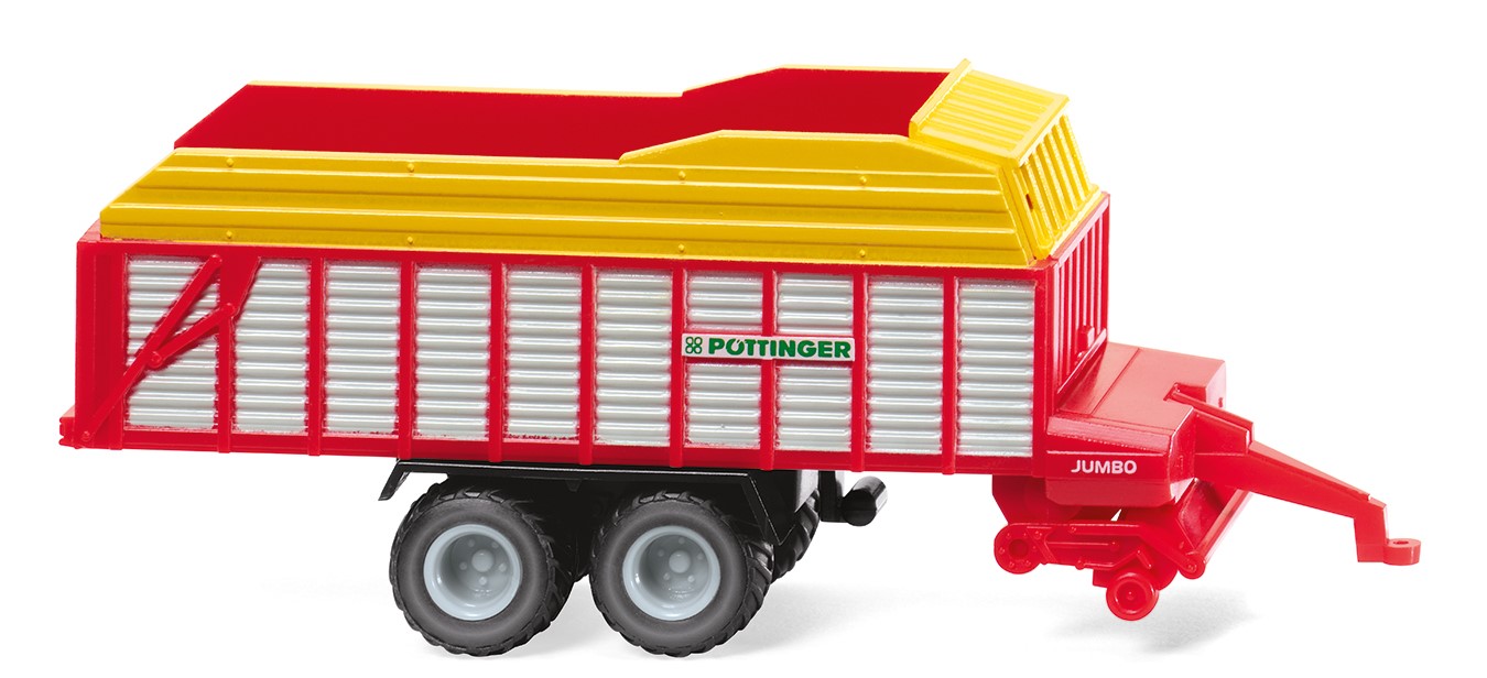 Ein wirklicher Jumbo! Der Pöttinger Ladewagen bringt die aktuelle Dimension der Landmaschinen-Gegenwart in den Maßstab 1:160. Der leistungsstarke Ladewagen Jumbo von Pöttinger macht auch in der 160-fachen Verkleinerung eine gute und ebenso volumenreiche Figur. Aufwändig gestaltet kann das Gespann mit einem Top-Schlepper in jeder Miniaturszenerie hervorragend harmonieren. Roter Karosserieaufbau mit lichtgrauen Seitenteilen. Vordere Grasaufnahme sowie Deichsel in rot. Seitlich gelber Ladeschutz, lichtgraue Felgen. Seitliche Bedruckung mit grünem Schriftzug und Logo Pöttinger. Schwarze Kotflügel. Weißer Jumbo-Schriftzug an den Grasaufnahmeseiten.