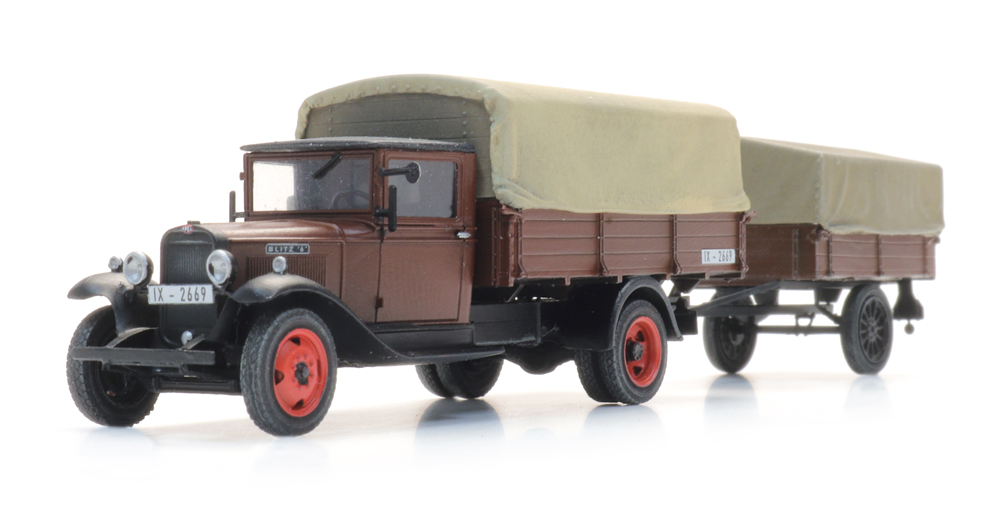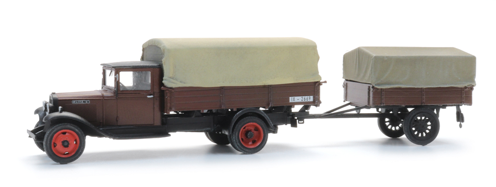 Opel Blitz 6 Pritschenwagen und Anhänger mit Planen, braun