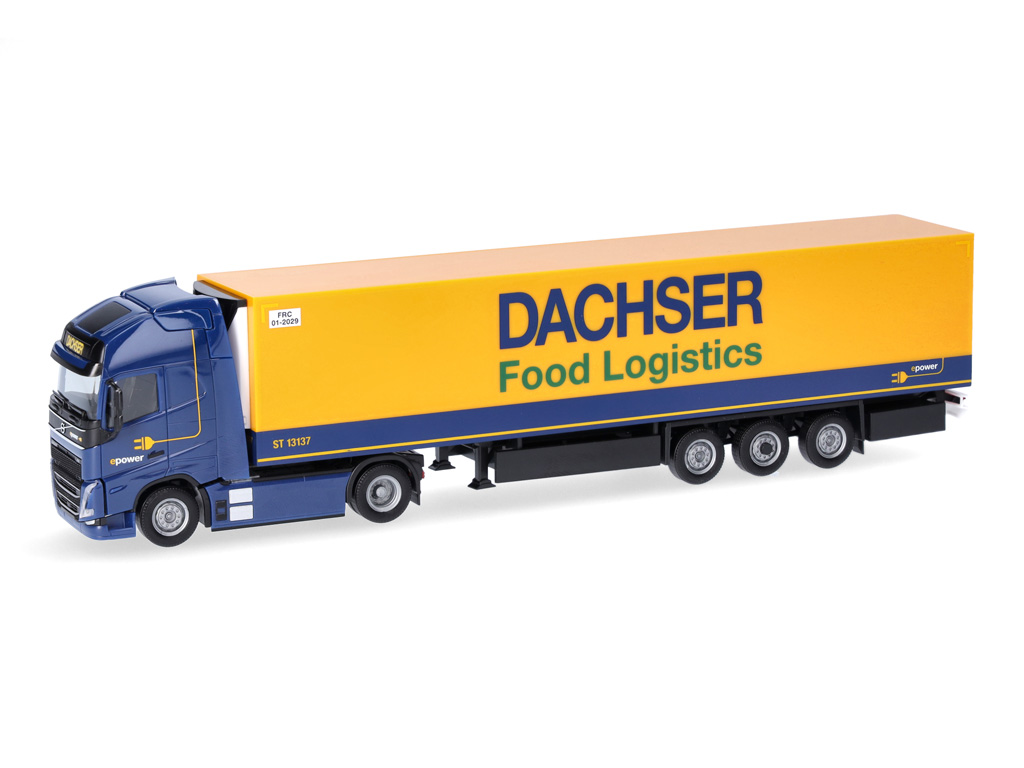 Bei dem Transportriesen Dachser ist Innovation Selbstverständlichkeit. Aktuell ergänzt der Volvo Electric mit einem Krone E-Auflieger mit Kühlkoffer-Aufbau den Fuhrpark. Herpa schließt sich dem an und stellt die 1:87er Miniatur in einmaliger Auflage her.