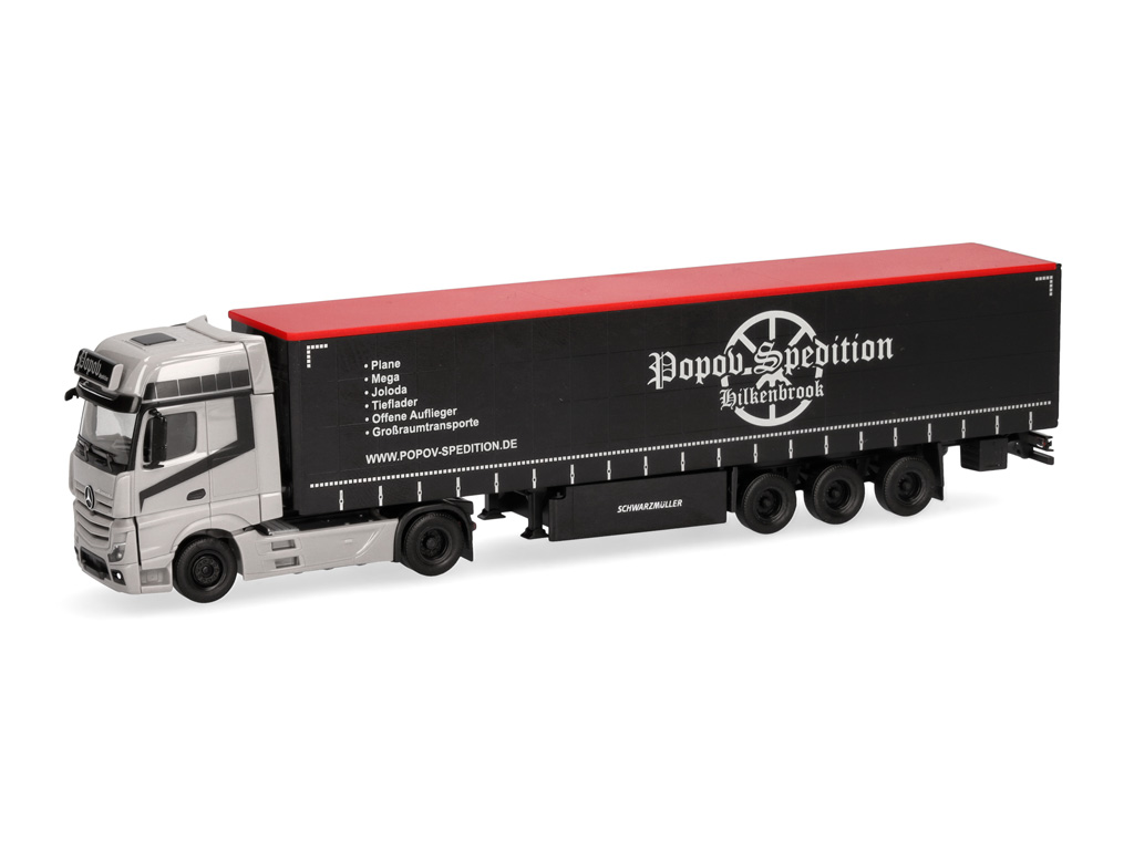 Das Unternehmen wurde im April 2016 unter dem Namen Andreas Popov Transporte gegründet. Im Juni 2016 hat Andreas Popov seinen ersten Transport mit Überseecontainern gefahren. Die Anzahl der Mitarbeiter ist seither stetig gewachsen, sodass im November 2021 ein Verwaltungsgebäude mit angrenzender Lagerhalle, Waschpark und Werkstatt bezogen wurde. Im Januar 2022 erfolgte die Umfirmierung zu Popov Spedion GmbH & Co. KG. Mit rund 20 LKWs nach EURO 6 NORM bedient man die Kundschaft. Der graue Mercedes zieht einen Standardplanenauflieger und erscheint in einmaliger Auflage.