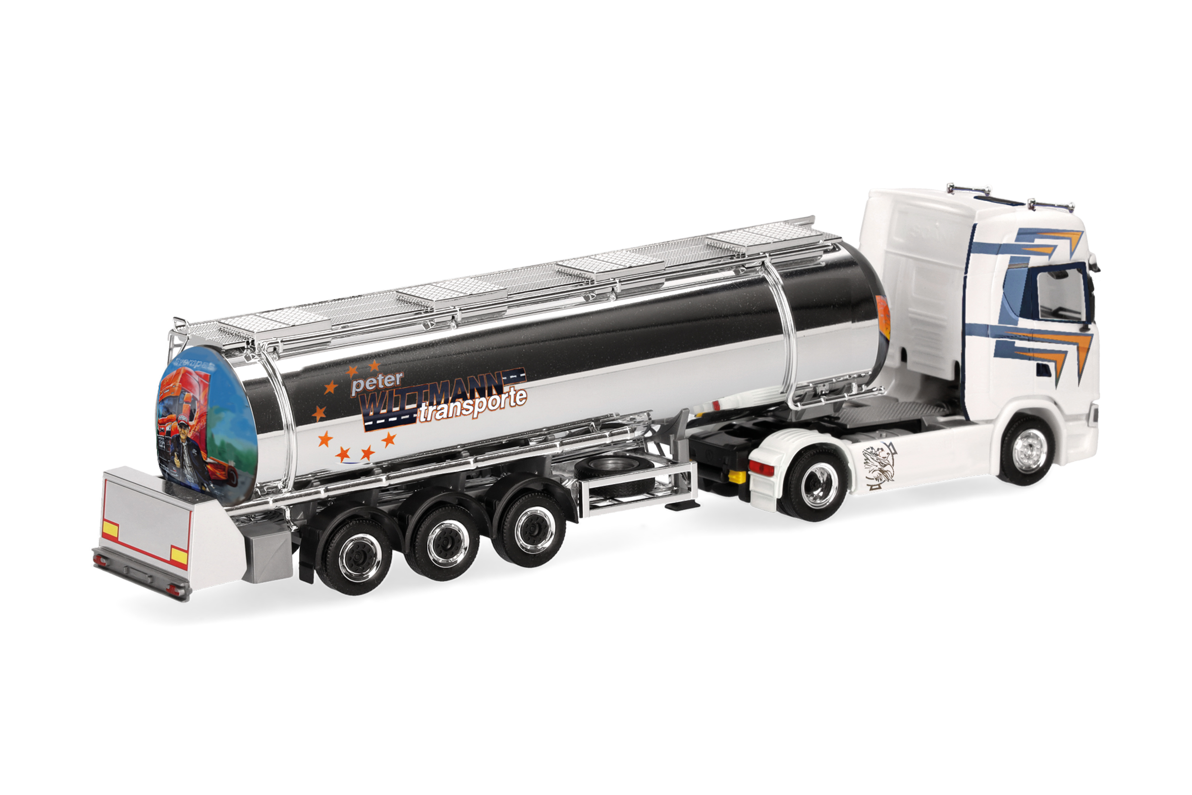 In Kammerstein in Mittelfranken ist die Spedition Wittmann Transporte beheimatet. Bereits in 1901 wurde das Unternehmen gegründet und setzt heute über 40 Sattelzüge international ein. Neben Kühlzügen sind auch 12 Tanksattelzüge im Bereich der Lebensmitteltransporte im Fuhrpark. Dieser Chromtank-Auflieger ist heckseitig mit einem Motiv dem Scania-Veredler Svempas gewidmet.