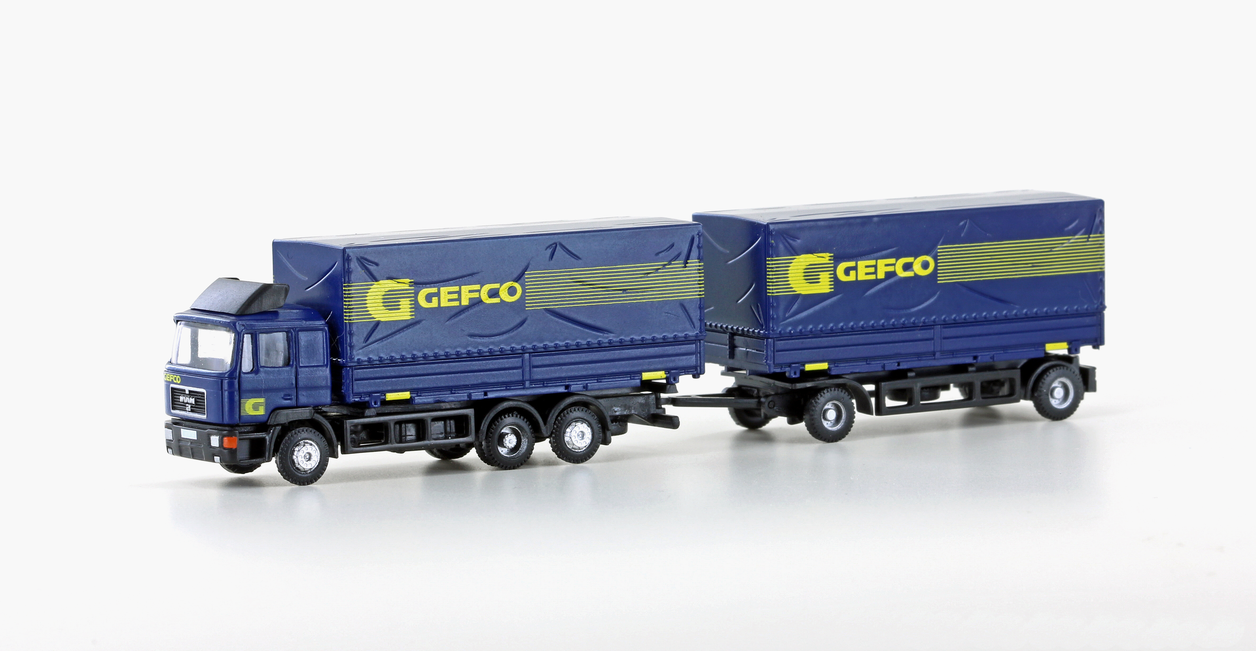 MAN F90, 3-achs Wechselpritschen-Hängerzug GEFCO