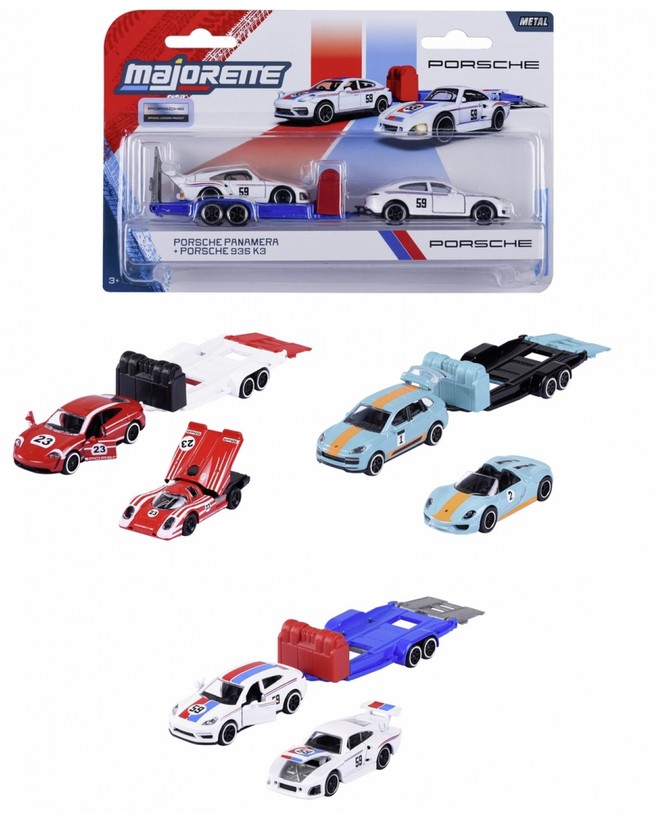 Majorette 8502103001 Porsche Deluxe Trailer, 3-sort.