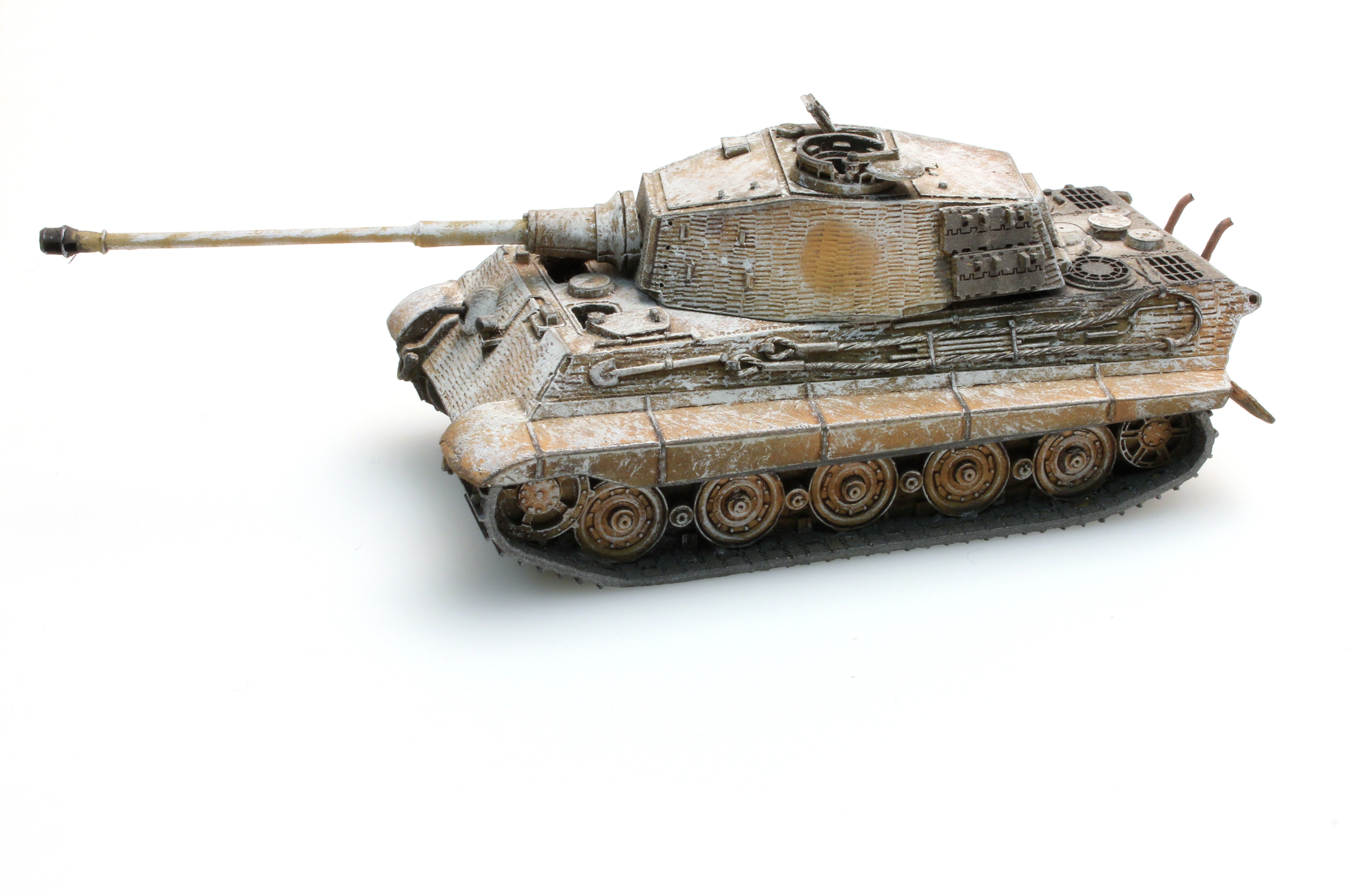 Fertigmodell aus Resin, lackiert. Kampfpanzer Tiger II (Henschel) der Wehrmacht in Wintertarnung