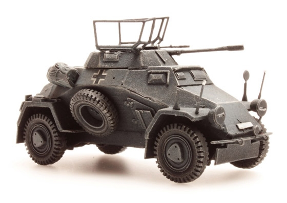 Fertigmodell aus Resin. Leichter Panzerspähwagen Sd.Kfz 222 mit 20 mm Kanone der Wehrmacht.