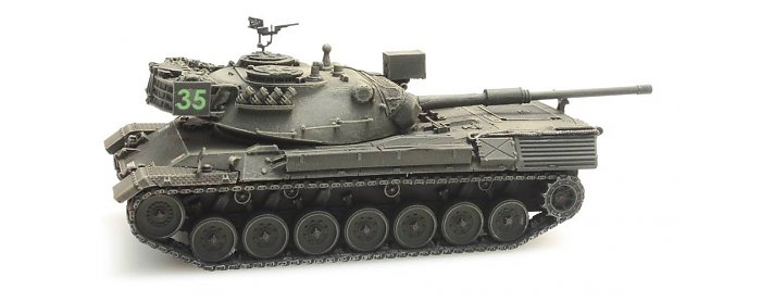 Fertigmodell aus Resin. Kampfpanzer Leopard 1 der Belgischen Armee, für den Eisenbahntransport.