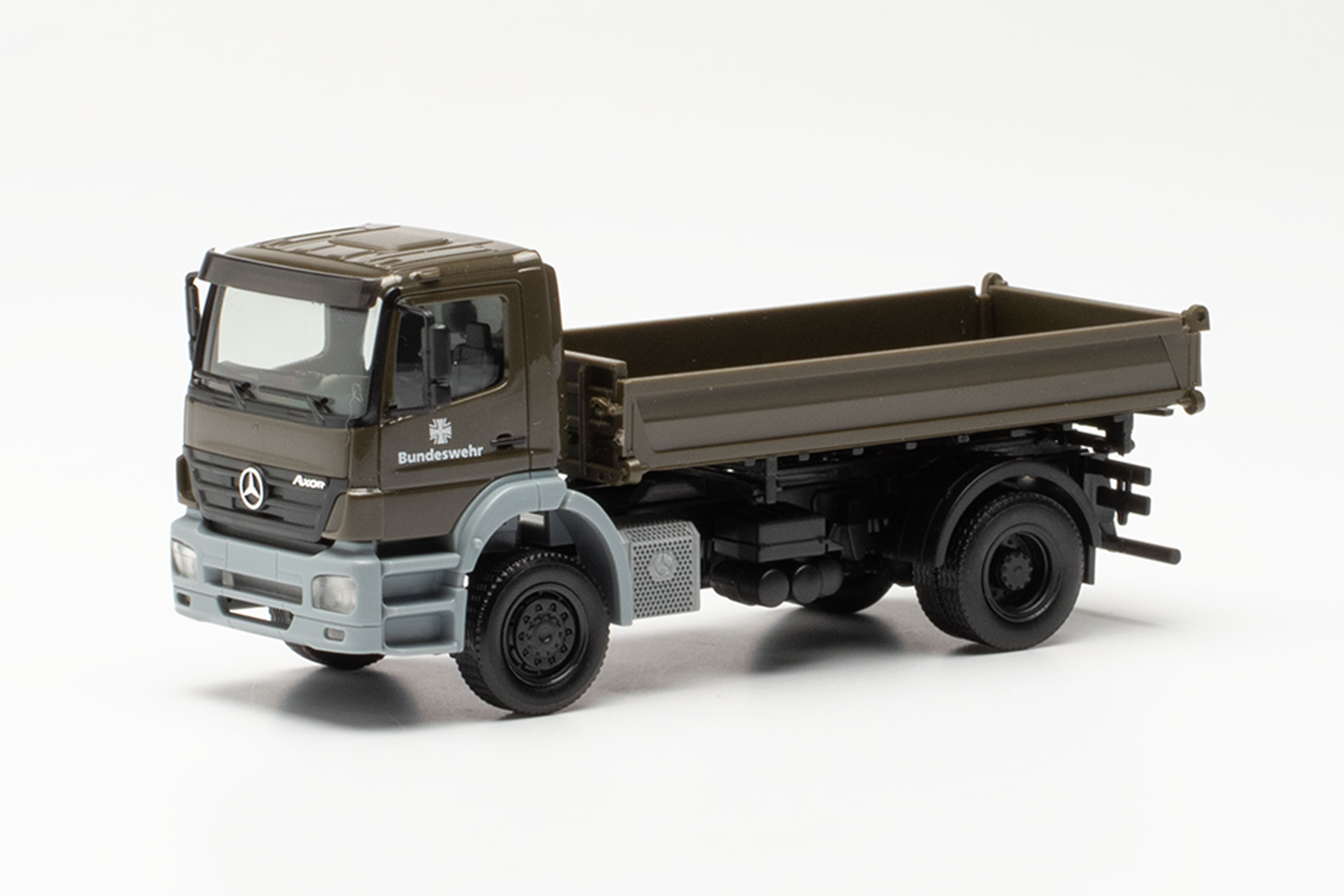 Zwei Mercedes-Benz Sprinter-Modelle mit Doppelkabine und Planenaufbau, sowie ein Mercedes-Benz Axor-Dreiseitenkipper ergänzen die ungepanzerten Fahrzeuge des BW-Fuhrparkservice im Minitanks-Bereich.