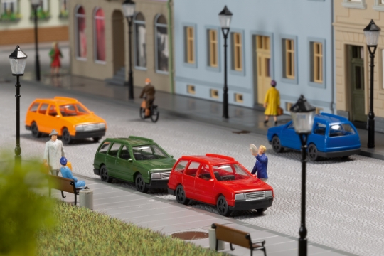 Fertigmodelle, farbig sortiert. Unentbehrliche preiswerte Dekoration auf jeder Anlage und jedem Diorama. Pro Auflage können die Farben wechseln.