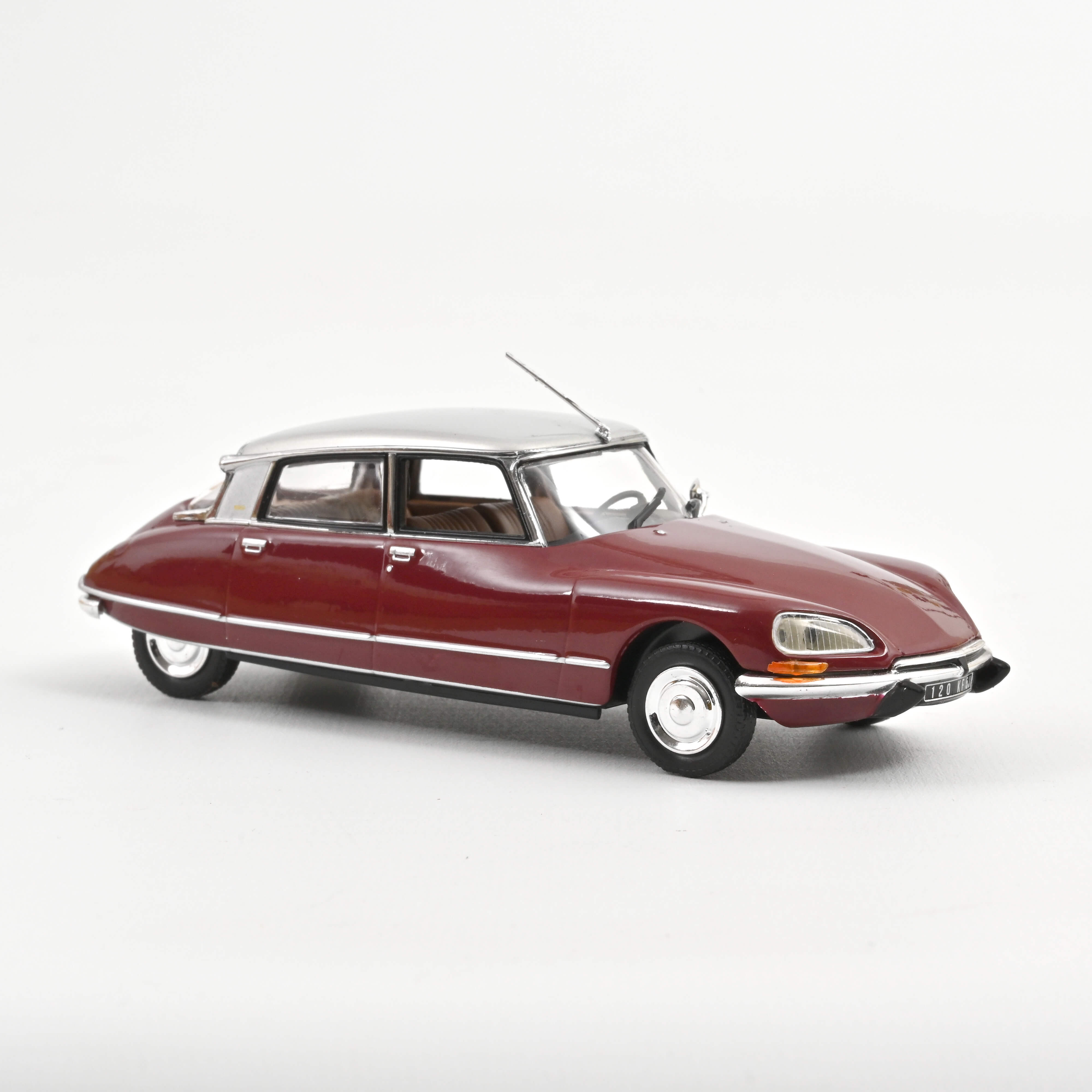Der Citroën DS 23 Pallas von 1972 im Maßstab 1/43 von Norev besticht durch seine zweifarbige Karosserie in Granatrot und ein metallic-graues Dach. Granatrot, eine seltene und elegante Farbe, war nur im Jahr 1972 im Citroën-Katalog verfügbar, was dieses Modell besonders macht. Das braune Interieur spiegelt die luxuriöse ?Tabac?-Lederausstattung wider und bleibt dem gehobenen Charakter dieses ikonischen Modells treu. Ein perfektes Sammlerstück für Liebhaber klassischer Fahrzeuge und ein Symbol für Citroëns Innovation und Luxus der 1970er Jahre.