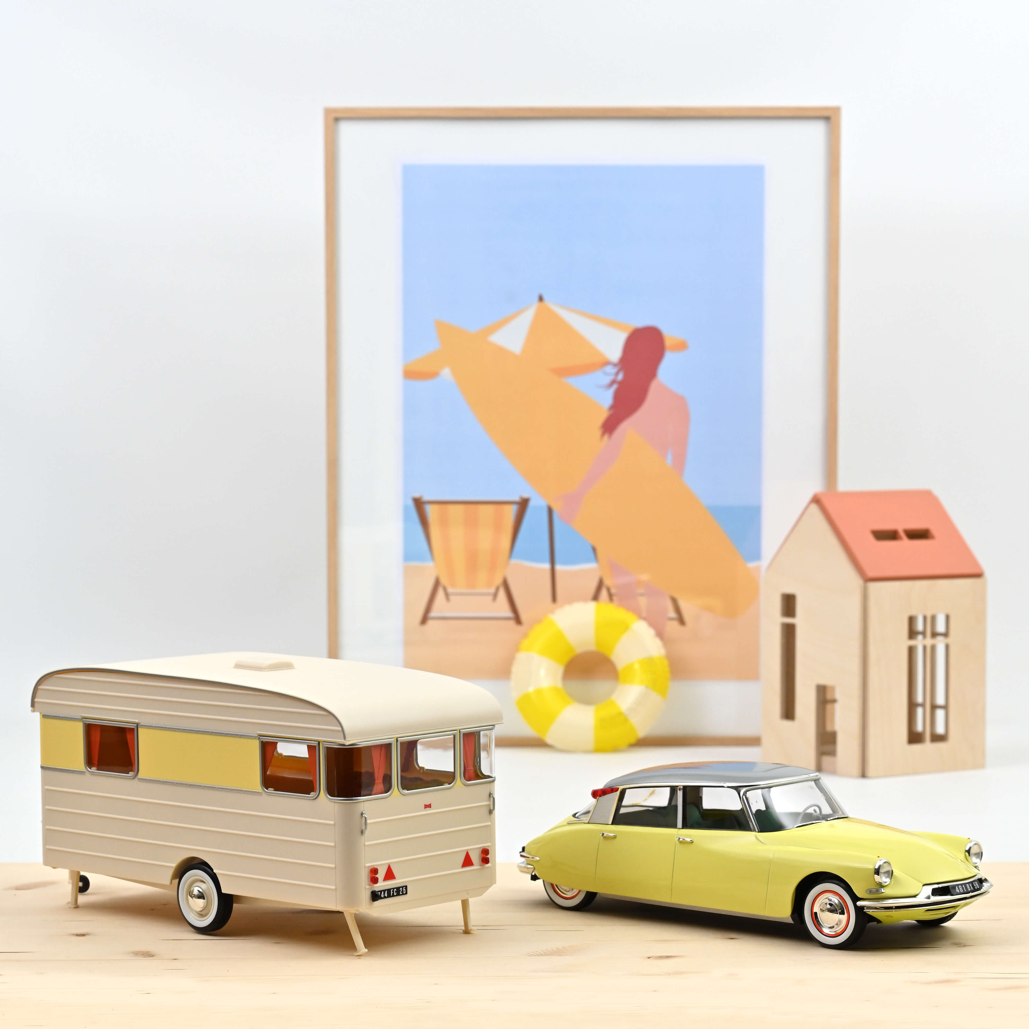 Citroën DS 19 1960 Jonquille Yellow & Caravan Digue Panoramic 1:18