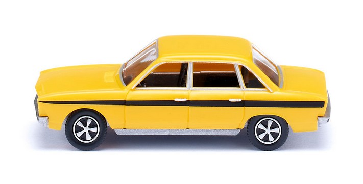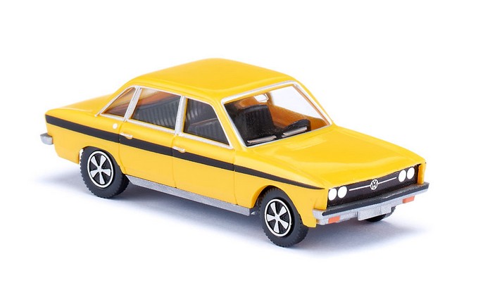 Wolfsburger Sportslimousine mit 100 PS unter der Haube 100 sagenhafte PS unter der Motorhaube machten den ansonsten eher familienorientierten VW K70 einst zur Sportlimousine der rasante, damals höchstpopuläre Sportstreifen sollte Signalwirkung bringen. Die Wolfsburger Autobauer hatten zu Beginn der Siebzigerjahre den Bedarf an stärkerer Motorisierung durchaus erkannt, denn der K70 sollte zwei Jahre lang diese Lücke füllen können. In den letzten beiden Produktionsjahren legte sich der K70 deshalb den Zusatz LS zu. Es war der Beweis für die Schnellläufer-Qualitäten, sollte aber nichts daran ändern, dass die Konzernkarriere der recht kantigen Limousine alsbald beendet war. Der noch vor der Übernahme von NSU entwickelte K70 blieb bis 1974 im Programm. WIKING revitalisiert die originalen WIKING-Formen und spendiert dem K70 mit typischem Sportdekor das rasante Outfit jener LS-Jahre. Fahrgestell mit Stoßstangen alusilber, Karosserie rapsgelb, Inneneinrichtung schwarz. Orange Blinker vorn. Rücklichter rot, Rückscheinwerfer gesilbert. Heckseitig silberner Schriftzug K70 LS. Seitlich schwarze Dekorstreifen. Türgriffe, Tankschloss und Fensterumrandungen gesilbert.
