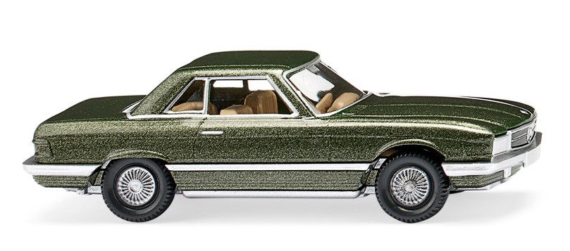 Der Dallas-SL von Bobby Ewing Architekten mochten ihn, Bobby Ewing machte ihn Ende der Siebzigerjahre in der amerikanischen Erfolgsserie Dallas populär. Damals mit US-Kennzeichen Ewing 4 wurde der Mercedes-Benz R107 weltberühmt. Der SL sollte zum erfolgreichen zweisitzigen Roadster werden. WIKING stellt ihn im Zypressengrün-metallic-Lack vor. Der R107 gehörte zur SL-Baureihe, die 1971 als Nachfolger die sogenannte Pagode (Mercedes-Benz W113) abgelöst hatte. Wer beim WIKING-Modell genau hinschaut, versteht, warum der SL so stilprägend für das Mercedes-Benz-Design in den Siebzigerjahren war. Unvergessen sind die kantigen Rechteckscheinwerfer und die wuchtig-breiten Heckleuchten. Karosserieober- und -unterteil zypressengrün-metallic lackiert und mit Klarlack-Finishing veredelt. Zwischenteil mit Kardanteil silber lackiert. Inneneinrichtung sandgelb. Schwarzer Kühlergrill mit silbernem Mercedes-Benz-Stern sowie Zierleisten. Seitliche Fensterleisten silbern bedruckt. Heckseitig Rückleuchten rot bedruckt sowie Typenzeichen 350 SL mit Unterstrich silbern bedruckt.
