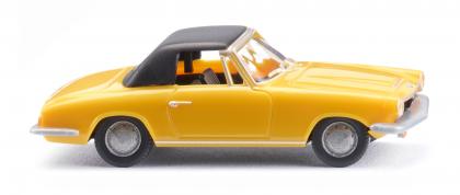 Leuchtendes BMW-Cabrio nach feiner italienischer Art Hans Glas wusste 1963, was er seinen Kunden mit dem 1600er Cabrio schuldig war: Sportlichkeit war beim Designer der italienischen Karosserieschmiede Frua gepaart mit der Eleganz der Karosserielinie - ganz gleich, ob das Cabrio offen oder geschlossen gefahren wurde. Später von BMW ins Programm übernommen, sollten es nur wenige Cabrios des BMW 1600 GT geben, ehe das Schicksal der schmucken Glas-Karosserie endgültig besiegelt war. Mit dem BMW 1600 GT Cabrio fährt bei WIKING ein fast vergessener Klassiker der Sechzigerjahre vor. Denn von Herbst 1967 bis Sommer 1968 führte BMW nach der Firmenübernahme die sportliche Baureihe von Glas zwar fort - über den Charakter eines sprichwörtlichen Auslaufmodells sollte sie dennoch nicht hinauskommen. Dass nach der Übernahme des Dingolfinger Autobauers Glas die neuen Eigentümer von BMW ihr Markenlogo auf der Haubenspitze wirkungsvoll platzierten und dazu noch die markentypische Nierenoptik am Kühler prangte, war nur folgerichtig. Karosserie gelb, Fahrgestell, Cabriodach und Innenausstattung schwarz. Sowohl Stoßstangen als auch Rückspiegel silbern veredelt. Frontscheinwerfer transparent eingesetzt, vordere Blinker orange und Rückleuchten rot bedruckt. Felgen silbern. Schwarzer Kühlergrill mit blau-weißem BMW-Logo. Heckseitig silberner Schriftzug '1600 GT' sowie BMW-Logo aufgedruckt. Fensterumrandung gesilbert.