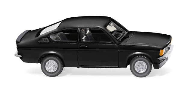 Karosserie schwarz. Frontscheinwerfer transparent eingesetzt. Inneneinrichtung mit Lenkrad ebenso schwarz wie der Kühlergrill. Stoßstangen und Felgen silber. Fensterumrandung sowie Türgriffe und seitliche Lüftungen schwarzgrau. Kühlergrillbedruckung mit silbernem Opel-Logo. Blinker orange. Heckspoiler schwarz gehalten. Heckseitiger Opel-Schriftzug.