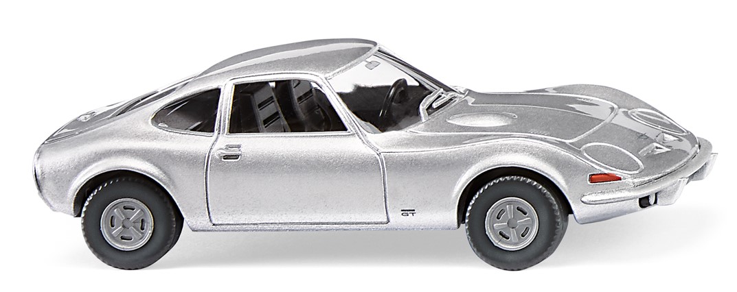 Prädikat wertvoll: Silberner Opel GT hat das gewisse Etwas Wer den silber-metallicfarbenen Opel GT vor Augen hat, vergibt auf Anhieb das Prädikat wertvoll. Im Glanz der changierenden Karosserie hat das Sportcoupé das gewisse Etwas. So erscheint das Sportcoupé in neuer Farbe und zählt bei WIKING einmal mehr zu den favorisierten Youngtimern im Klassikersortiment. Zwischen 1968 und 1973 sorgte sein Vorbild für Furore nicht nur wegen seiner serienungewohnten Schlafaugen. 103.373 liefen in Bochum vom Band viele davon gingen in die USA. Der Grand Tourisme, kurz GT, war die schlichte Herausforderung an den Wettbewerb, der nicht lange auf sich warten ließ. Karosserie reflexsilber lackiert, Fahrgestell schwarz. Inneneinrichtung und Lenkrad schwarz. Heckscheinwerfer rottransparent eingesetzt. Stoßstangen silbern vorn und hinten eingesetzt, Felgen silbern. Front- und heckseitig Opel-Logo, seitlicher Zierrat mit GT-Schriftzug silbern bedruckt, Blinker orange.