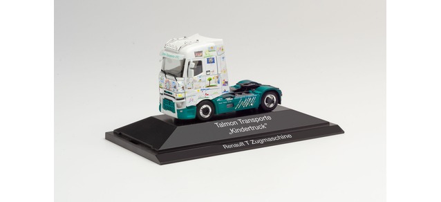 Talmon Trucks stellte das Vorbild für den Renault T Berliet, gerne auch wegen der einlackierten Roststellen als Schrotti bezeichnet. Nun erscheint das zweite Fahrzeug von Talmon, der Kindertruck. Rundum sind von Kindern erstellte Motive mittels Airbrush auf das Fahrzeug lackiert worden, die auch diese Zugmaschine zu einem Highlight machen.