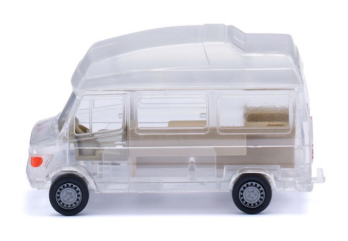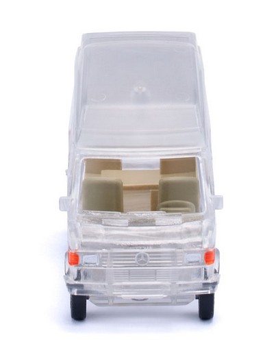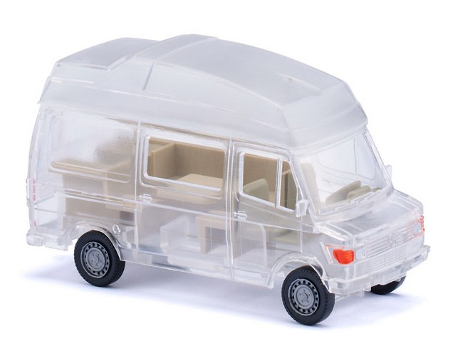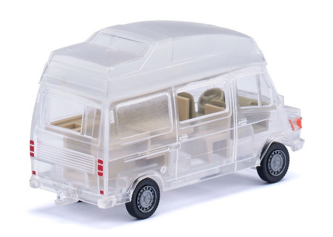 Karosserie schafft klaren Blick auf Modellarchitektur Es ist schon ein eigenständiges Sammelthema geworden, wenn es um die transparenten WIKING-Modelle geht. Lange Jahre wurden sie als Jahresedition in der SIKU//WIKING Modellwelt vorgestellt, jetzt gibt es eine Fortsetzung innerhalb der Modellpflege. Dazu hat sich WIKING diesmal des Mercedes-Benz Wohnmobils angenommen. Für die Enthusiasten der Traditionsmarke wird damit die ganze modellbauerische Architektur in all ihren konstruktiven Feinheiten sichtbar. Lediglich das Interieur von Sitzen und Wohnmobilausstattung wurde farblich abgesetzt, so dass der Blick durch die Karosserie aufs Innenleben frei wird. Was bei den normalen Abspritzungen nicht erkennbar ist, wird beim Transparent-Modell sehr schön sichtbar. Denn das Hochdach erfährt lediglich durch entsprechende Halte- und Klebepunkte seinen Aufsatz auf die normale Transporterkarosserie. Damit reiht sich das Wohnmobil stimmig in diese besondere WIKING-Reihe ein. Karosserie sowie Fahrgestell mit Kardanteil transparent. Sitz olivgrau, Inneneinrichtung cremebeige. Hochdach transparent aufgesetzt. Frontseitiger Mercedes-Benz-Stern gesilbert. Rückleuchten und Reflektoren karminrot.