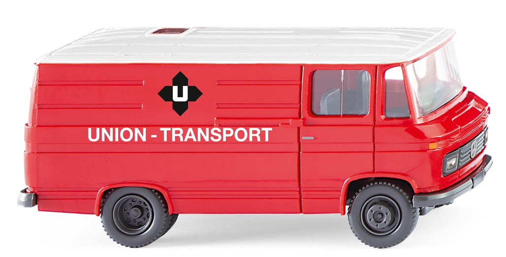 Düsseldorfer Transporter in Diensten von Union Transport Der L 406 als zweite Generation des Düsseldorfer Transporters sollte bei Union Transport das wendige Fahrzeug für den schnellen Verteilerverkehr werden. Ganz in der roten Gestaltungslinie von Union Transport rundete er in den Sechzigerjahren den Fuhrpark nach unten ab. 1967 hatte Mercedes-Benz den L 406 als neue Baureihe vorgestellt und die Optik damit der kubischen Generation angepasst. Bis weit in die Achtzigerjahre hinein sollte der Transporter als Brot-und-Butter-Auto weite Verbreitung finden. Union-Transport sorgte einst sowohl im Fernverkehr, aber auch im Nahbereichstransport für verlässliche Warenverteilung. Karosserie karminrot, Fahrgestell anthrazitgrau. Kühlergrill mit gesilberten Scheinwerfern und Mercedes-Benz-Stern. Türgriffe gesilbert, orangene Blinker. Heckleuchten rot bedruckt. Seitlich mit weißem Schriftzug Union-Transport sowie schwarzweißem Firmenlogo.