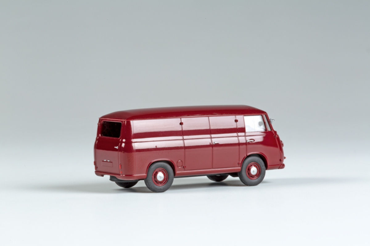 Goliath Express 1100 Kasten weinrot - Goliath Express 1100 Fertigmodell mit detaillierter Bedruckung. Gegen Ende der 50er Jahre produzierte Carl F. W. Borgward in seinem Goliath-Werk in Bremen den sehr modern konstruierten Goliath Express 1100. Die Fahrzeuge waren in den 50er Jahren als ungewöhnlich vielseitig und leistungsfähig bekannt. Als Kastenwagen zählte der Express mit einem fast 6 m³ umfassenden Laderaum zu den größten Lieferfahrzeugen seiner Klasse. Durch eine breite Hecktür und eine seitliche Doppeltür ließ sich der Wagen sehr bequem beladen, und man konnte mit ihm annähernd eine Tonne an Ladegut transportieren. Mit diesen Eigenschaften bot sich der Goliath Express für vielfältigste Beförderungsaufgaben an. Zusätzlich liegen dem maßstäblichen Modell Kennzeichen und Rückspiegel zur Selbstmontage bei. 52 x 18 x 20 mm