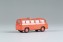 Goliath Express 1100 Luxusbus hellkoralle Dach offen - Goliath Express 1100 Fertigmodell mit detaillierter Bedruckung. Der Goliath Express 1100 Luxusbus wurde als das Topmodell der gesamten Express-Baureihe angeboten. Er basierte in seiner Grundstruktur auf dem Kombi, unterschied sich aber in vielen Ausstattungsdetails von diesem. Das auffälligste Merkmal war wohl die großzügige Rundumverglasung. Ergänzend zur großen, gewölbten Frontscheibe hatte der Luxusbus links und rechts insgesamt zehn Seitenfenster und zur ohnehin schon breiten Heckscheibe kamen hinten zwei Eckfenster hinzu. Weitere acht Dachfenster erhellten den Innenraum noch mehr und ermöglichten während der Fahrt einen schönen Blick nach oben. Bei der Entwicklung des Fahrzeuges hat man besonderes Augenmerk daraufgelegt, für die Innenausstattung einen zeitgemäßen Luxus umzusetzen. So verfügten alle Sitze über weiche, mit farbigem Kunstleder überzogene Vollpolster. Und selbst kleinen Annehmlichkeiten für eine bequeme Reise, wie z. B. Kleiderhaken, Ascher, Gepäcknetze, eine Innenraumbeleuchtung und Halteschlaufen gehörten hier zur Serienausstattung. Zusätzlich liegen dem maßstäblichen Modell Kennzeichen und Rückspiegel zur Selbstmontage bei. 52 x 20 x 21 mm