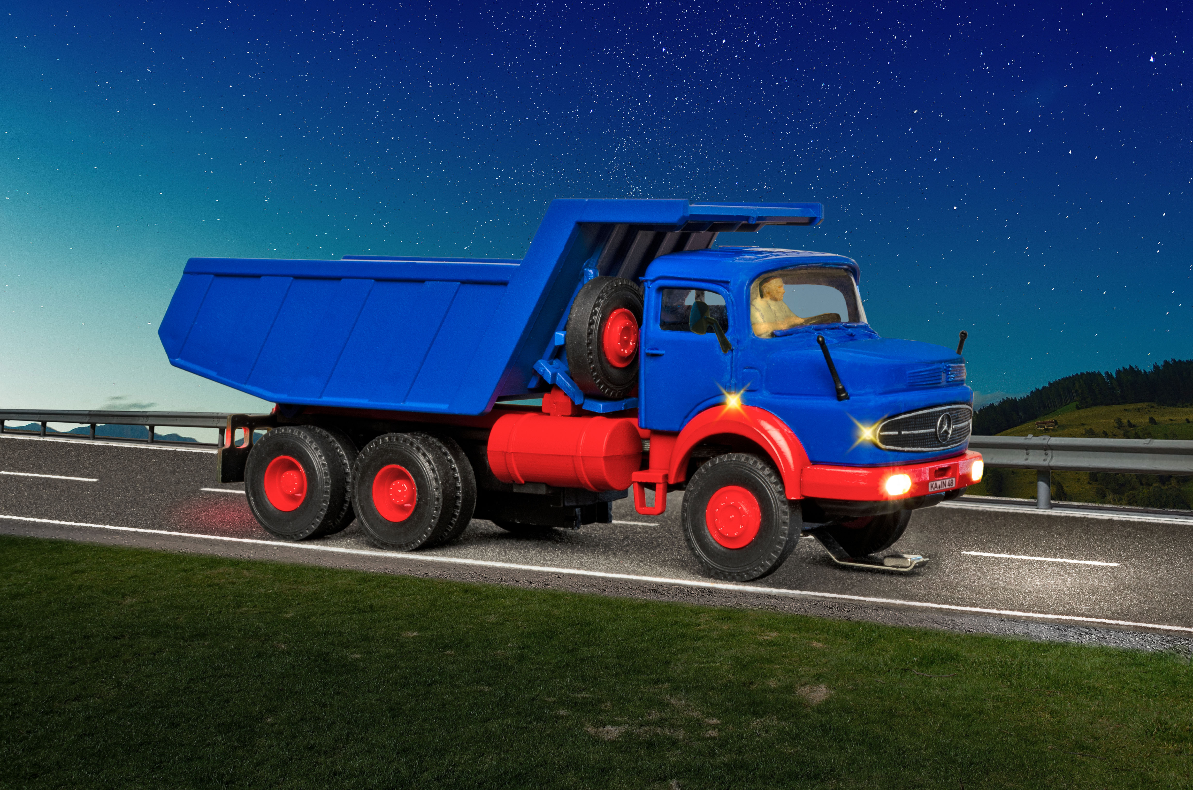 H0 MB Rundhauber 3-achs mit MEILLER Gesteinsmulde,Basis, Funktionsmodell - Wie alle Modelle der CarMotion-Serie verfügt das Fahrzeug über folgende Funktionen: - Lade- und Programmieranschluss - Kurze Ladezeiten durch moderne Li-Po Akkus - Mit einer Akkuladung ist bei normalem Fahrbetrieb mit Wartezeiten und verschiedenen Geschwindigkeiten eine Laufzeit von ca. 4 – 6 Stunden, bei Höchstgeschwindigkeit von ca. 2 Stunden möglich - Einfaches Ein-/Ausschalten mit Hilfe eines Reedkontakts unter dem Dach der Fahrerkabine mit Magnetstift oder Teleskop-Magnetstab Art. 8410 - Infrarot-Sender/-Empfänger für Abstandssteuerung (nur bedingt mit anderen IR-Systemen kompatibel) - Realistische Brems- bzw. Beschleunigungsvorgänge und konfigurierbarer Geschwindigkeit durch drehzahlgeregelten Motor - Freie Ladefläche durch Unterflurantrieb - Kabinenbeleuchtung - Bremslichter und Rückfahrscheinwerfer - Blinker rechts/links und Warnblinker steuerbar - Abblendlicht / Fernlicht - Dachblinker (abhängig vom Fahrzeugtyp) - Einsehbare Fahrerkabine mit Figur - 5-polige Steckkupplung zum Anschluss von CarMotion Anhängern oder Aufliegern - Kompatibel zu vorhandenen Systemen mit Fahrdraht oder Magnetband - Steuerung über Infrarot-Signale, Dauermagnete Art. 8431 in der Straße, elektromagnetische Stopp-Spulen und Fernbedienung Art. 8402 - Selbst ohne Spurhilfen ist eine kurze geradlinige Rückwärtsfahrt mittels Steuerung über die Fernbedienung möglich Vorbilddaten: MERCEDES BENZ LAK 2624, 177 kW/240 PS Dieselmotor, MEILLER Gesteinsmulde 8 – 10 m³, Nutzlast ca. 15 t, Gesamtgewicht 26 t. L 9,2 x B 3,3 x H 3,7 cm