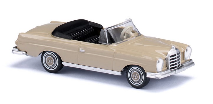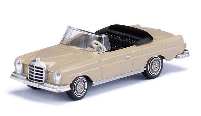 Der 280 SE war ein Symbol automobiler Genussfreude Der Mercedes-Benz 280 SE ist ein guter Beweis für das Fingerspitzengefühl von WIKING-Chef Fritz Peltzer. Er wählte in den Sechzigerjahren nicht nur Fahrzeuge des Alltagsverkehrs für sein Modellprogramm aus, sondern entschied sich im Formenbau auch zu Gunsten von Traumautos. Der Mercedes-Benz 280 SE in seiner offenen Ausführung gehörte zweifellos dazu. Die edle Karosserielinie mit Blick auf das offene und auf den ersten Blick großzügige Interieur sagt heute viel darüber aus, was die deutschen und internationalen Autofreunde vor nunmehr sechs Jahrzehnten als Komfort empfanden. WIKING spendiert dem Cabrio in der cremebeigen Neuauflage eine feine, vorbildgerechte Chromoptik, die seinerzeit das Vorzeigeauto prägte. Von 1967 bis 1971 wurde der 280 SE gebaut viele Filmstars und TV-Größen orderten ihn als Symbol für Status und automobile Genussfreude. Cremebeige Karosserie mit Klarlack-Finishing. Frontscheibe transparent eingesteckt. Inneneinrichtung und offenes Verdeck schwarz, Lenkrad perlweiß. Fahrgestell und Kühlergrill chromsilber veredelt. Silberne Felgen mit cremebeiger Radkappe und silbern aufgedruckten Mercedes-Benz-Stern. Schmale Weißwandringe auf den Reifen. Kühlergrillfläche mit schwarzen Flächen. Heckseitig rote Rückleuchten sowie silbern bedrucktes Typenzeichen 280 SE mit Unterstrich und zentriertem Mercedes-Benz-Stern. Türgriffe silbern bedruckt.