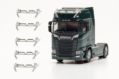 Formneuheit! Neu im Herpa-Zubehörprogramm ist dieser komplett neu gestaltete Lampenbügel, der zusätzlich zu den zwei LED-Leuchten mit jeweils zwei transparenten Rundumleuchten ausgestattet. Diese Lampenbügel erscheinen in schwarzer sowie verchromter Ausführung. In jedem Set sind jeweils 6 Stück enthalten.