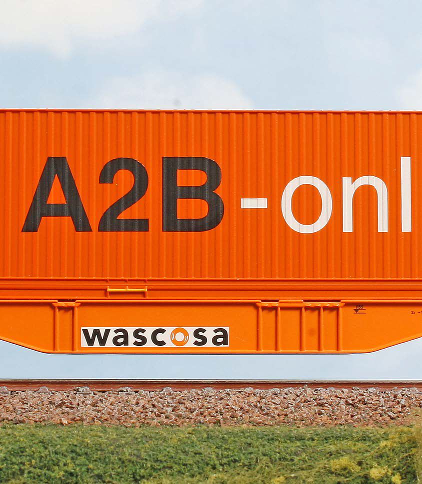 Intermodalwagen Typ Sggmrss 90 Wascosa, Epoche V/VI, beladen mit A2B-online Container und Leasing45 Wechselaufbauten