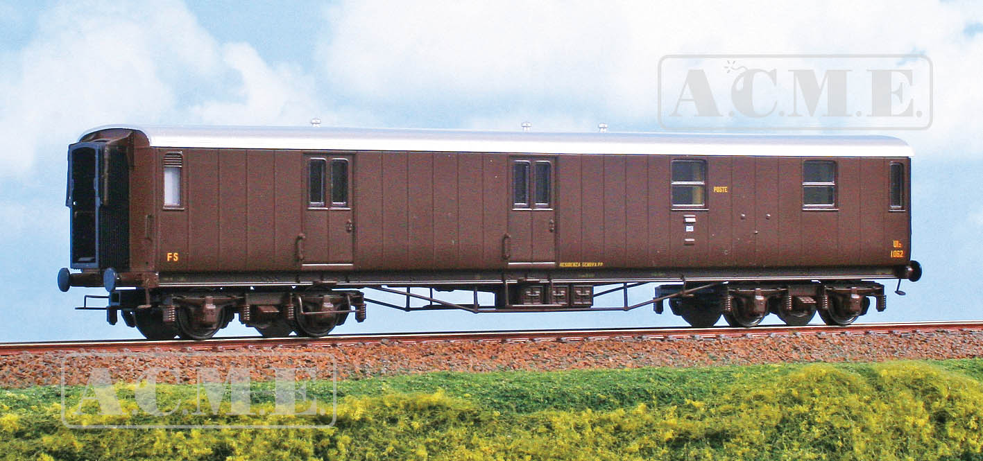 FS-Postamt mit Holzkiste UIIz 1.062 in Kastanienlackierung, wie in den 1950er Jahren im Einsatz.
