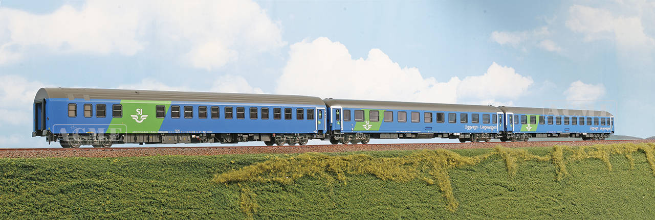 Euronight 345/346 Berlin-Hamburg-Kopenhagen-Stockholm der SJ, Epoche VI, bestehend aus Schlafwagen WLABmz, Liegewagen Bauart Bvcmz 248.5, Liegewagen Bauart Bvcmbz 249.1, in blauer Lackierung mit SJ-Logo