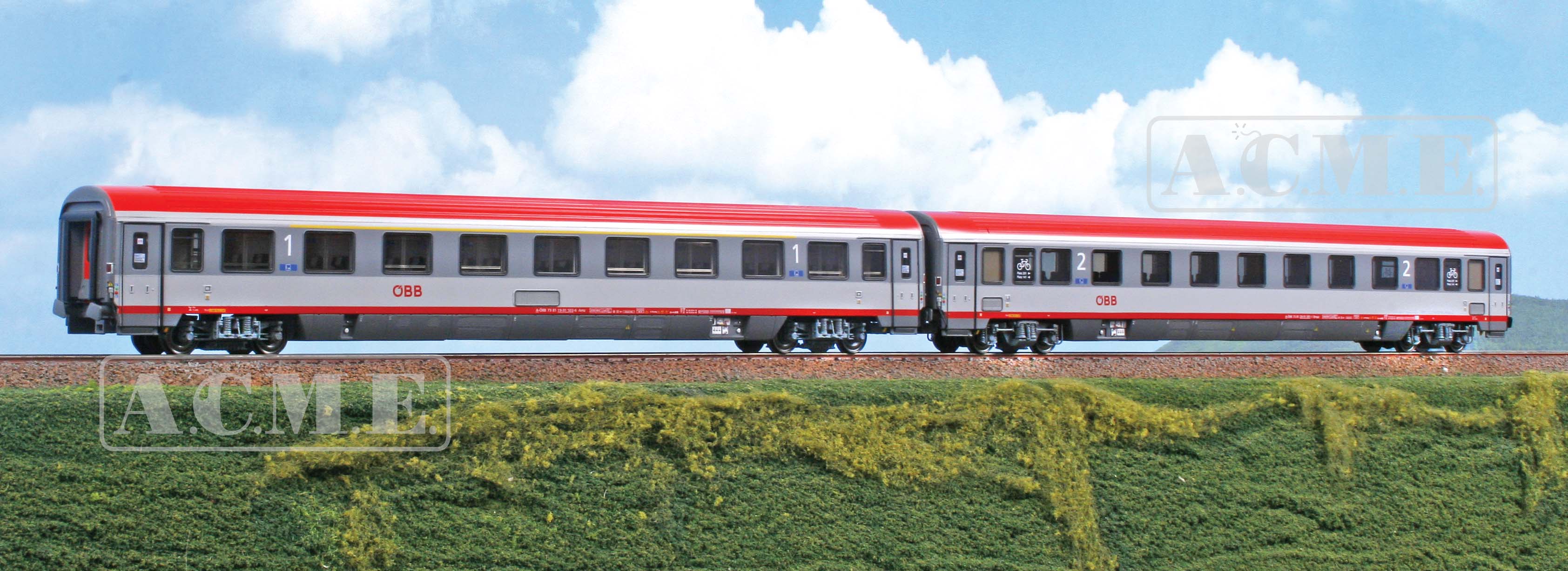 Set bestehend aus einem Amz-Abteilwagen 1. Kl und einem Bmpz-Salonwagen 2. Kl im aktuellen Zustand in Upgrade-Lackierung.