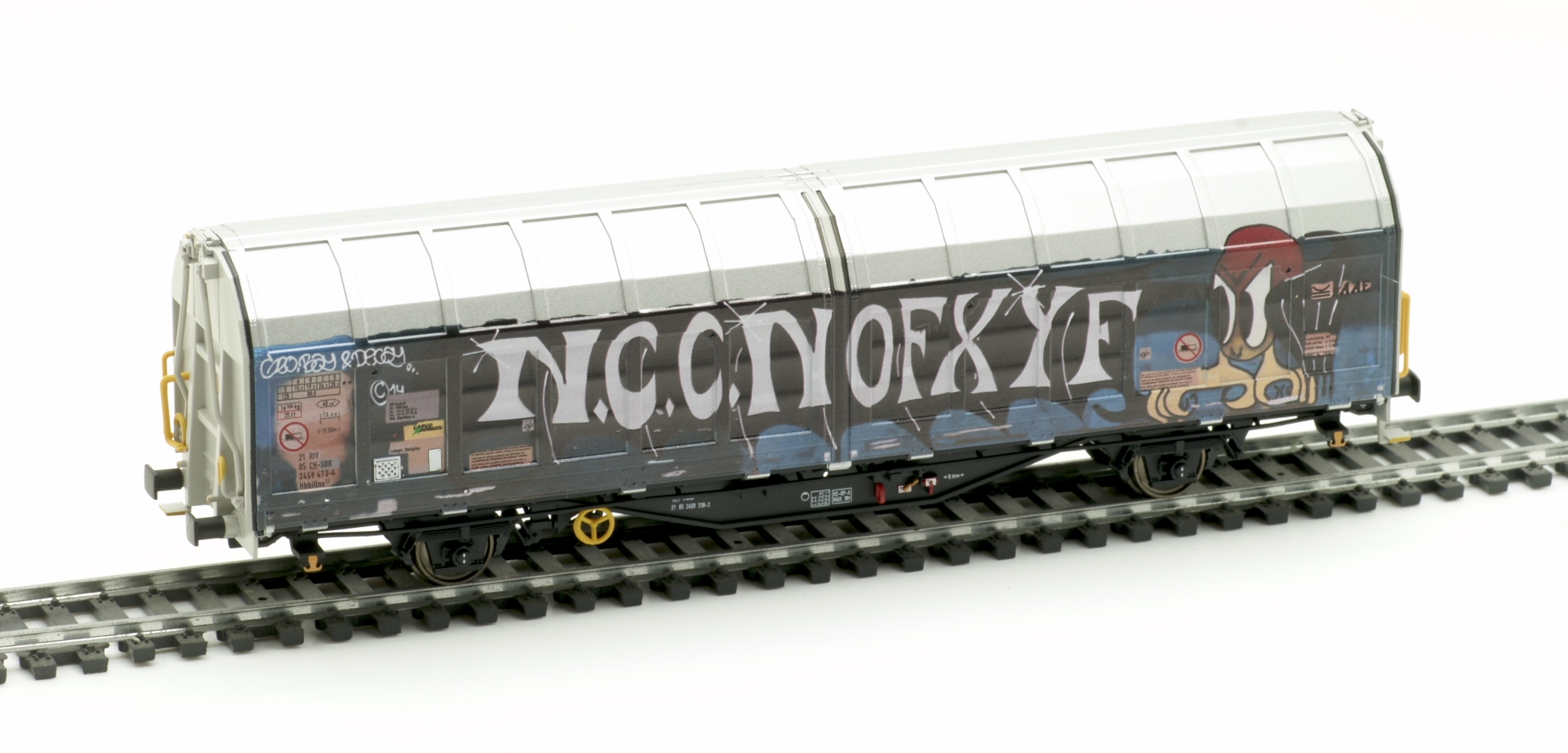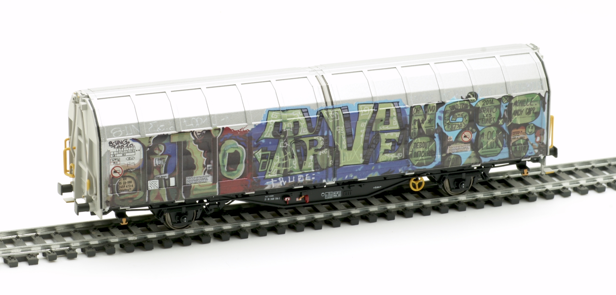Sehr zum Ärger der Bahn werden jedes Jahr tausende Wagen und Triebfahrzeuge mit Graffitis überzogen - allerdings muss man aber auch zugeben, finden sich immer wieder auch Motive, die zum Schmunzeln oder auch Nachdenken anregen. Mit einer Serie von großflächigen Motiven sind zahlreiche Schiebewandwagen der Bauart Hbbillns der SBB und TWA verziert worden. Mit der Serie "Zukunft ist Luxus" entstanden verschiedene Motive rund um den Kapitalismus, Flüchtlingskrise und sogenannten First World Problems. Beim Besprühen der "Wholecars" werden bewusst alle Anschriftenfelder