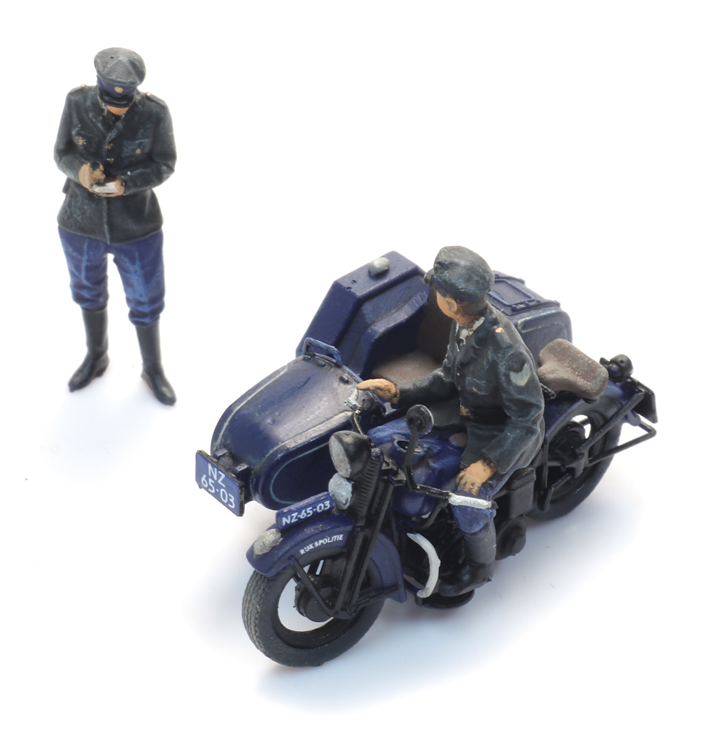 Reichspolizeimotorrad mit Beiwagen + 2 Figuren - 1:87 Bausatz aus Resin und Ätzteile, unlackiert