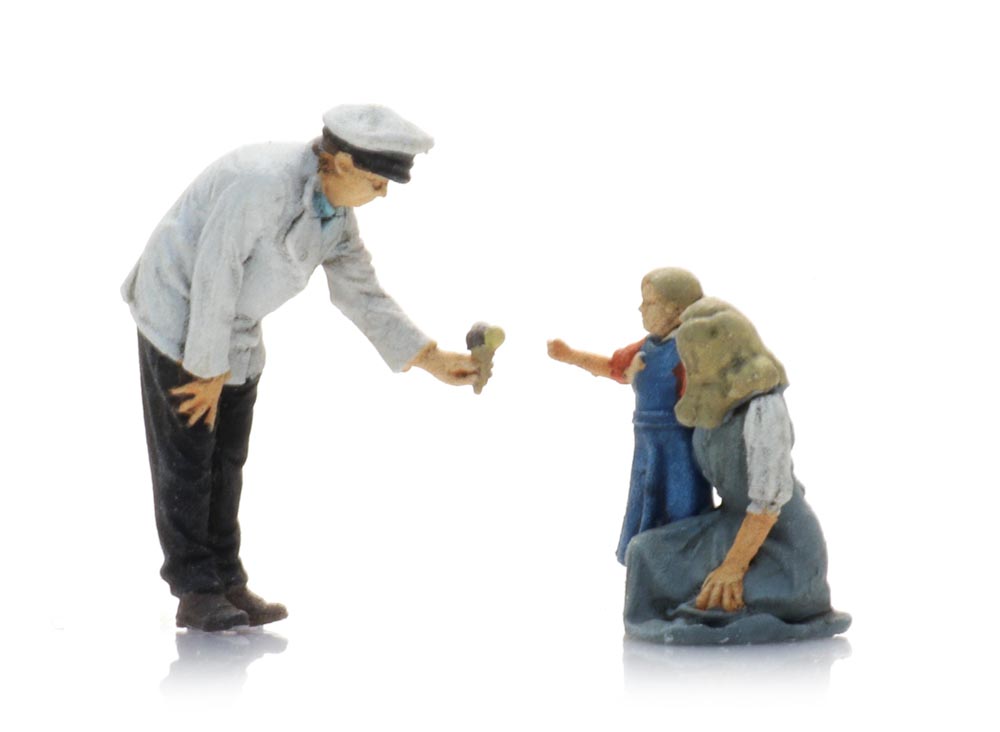 Eisverkäufer mit Mutter und Kind (3x) - 1:160 Fertigmodell Figuren, lackiert