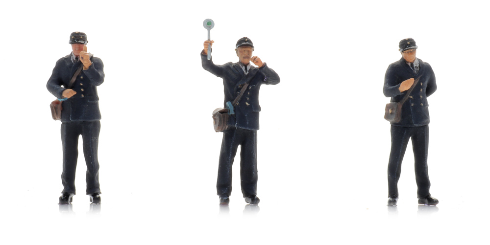 NS Schaffner auf dem Bahnsteig 50er bis 70er Jahre (3x) - 1:87 Fertigmodell Figuren, lackiert