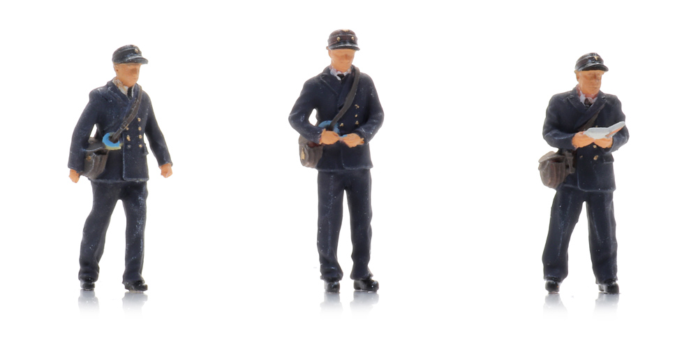 NS Schaffner im Zug 50er bis 70er Jahre (3x) - 1:87 Fertigmodell Figuren, lackiert