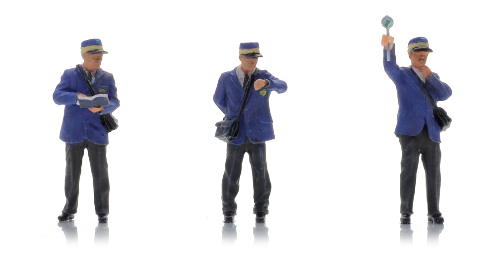NS Schaffner auf dem Bahnsteig 70er Jahre (3x) - 1:87 Fertigmodell Figuren, lackiert
