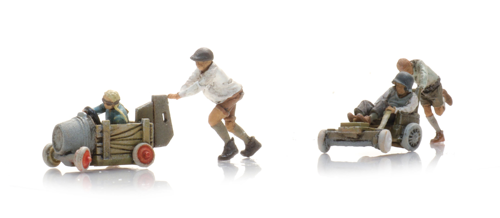 Seifenkistenrennen 1940-1970 (4x) - 1:87 Fertigmodell Figuren, lackiert