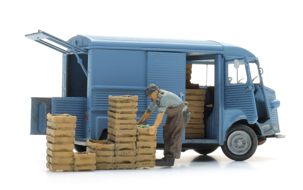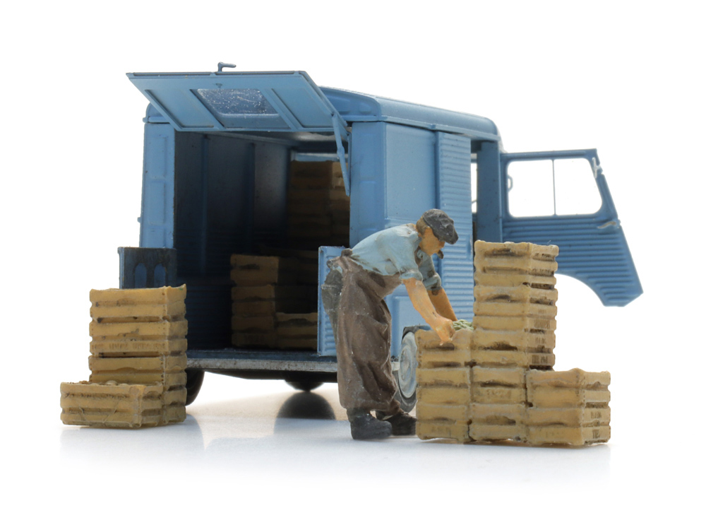 Marktverkäufer mit Kisten