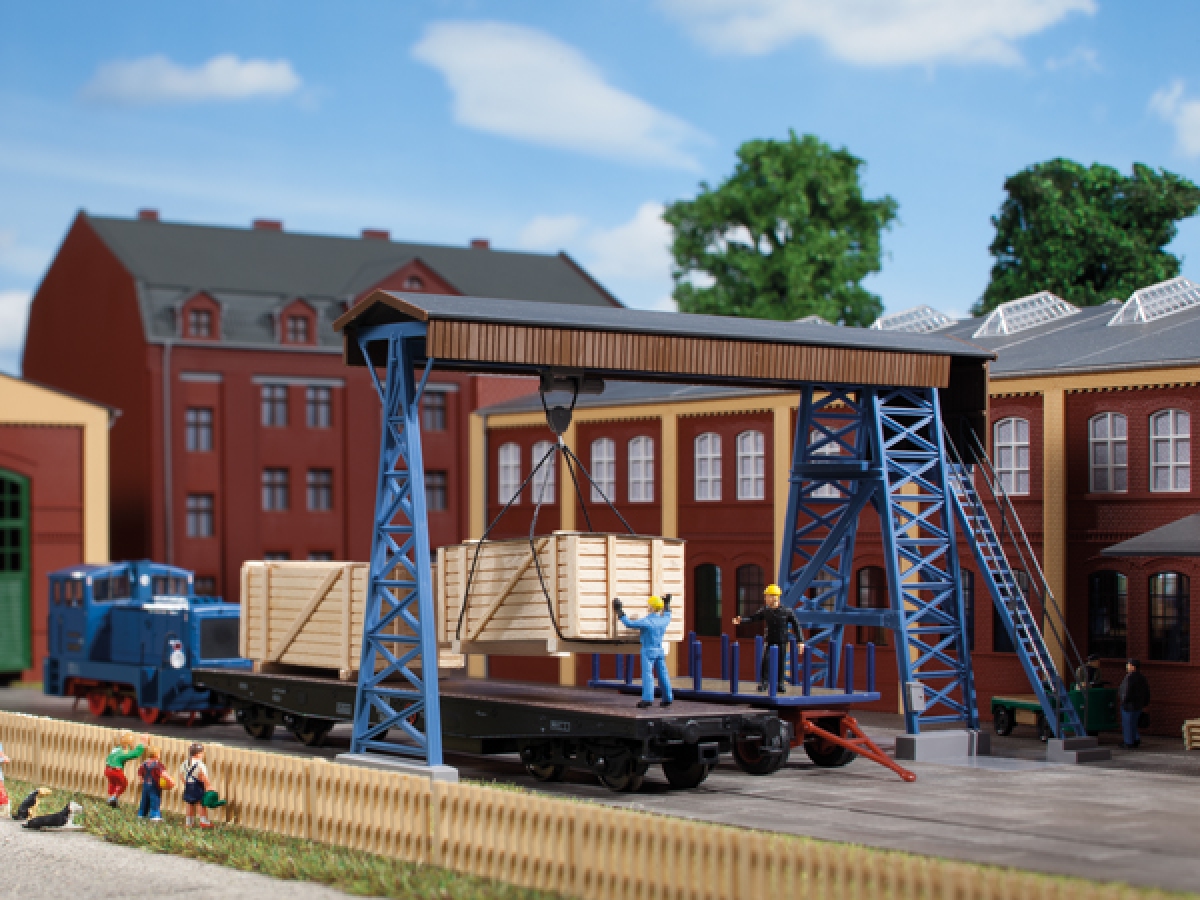 Unser Vorbild wurde von Aue nach Oberwiesenthal zur Fichtelbergbahn umgesetzt. Er dient zum Be- und Entladen von Gütern und auch zum Heben und Verladen der Schlacke. Die Laufkatze ist beweglich.