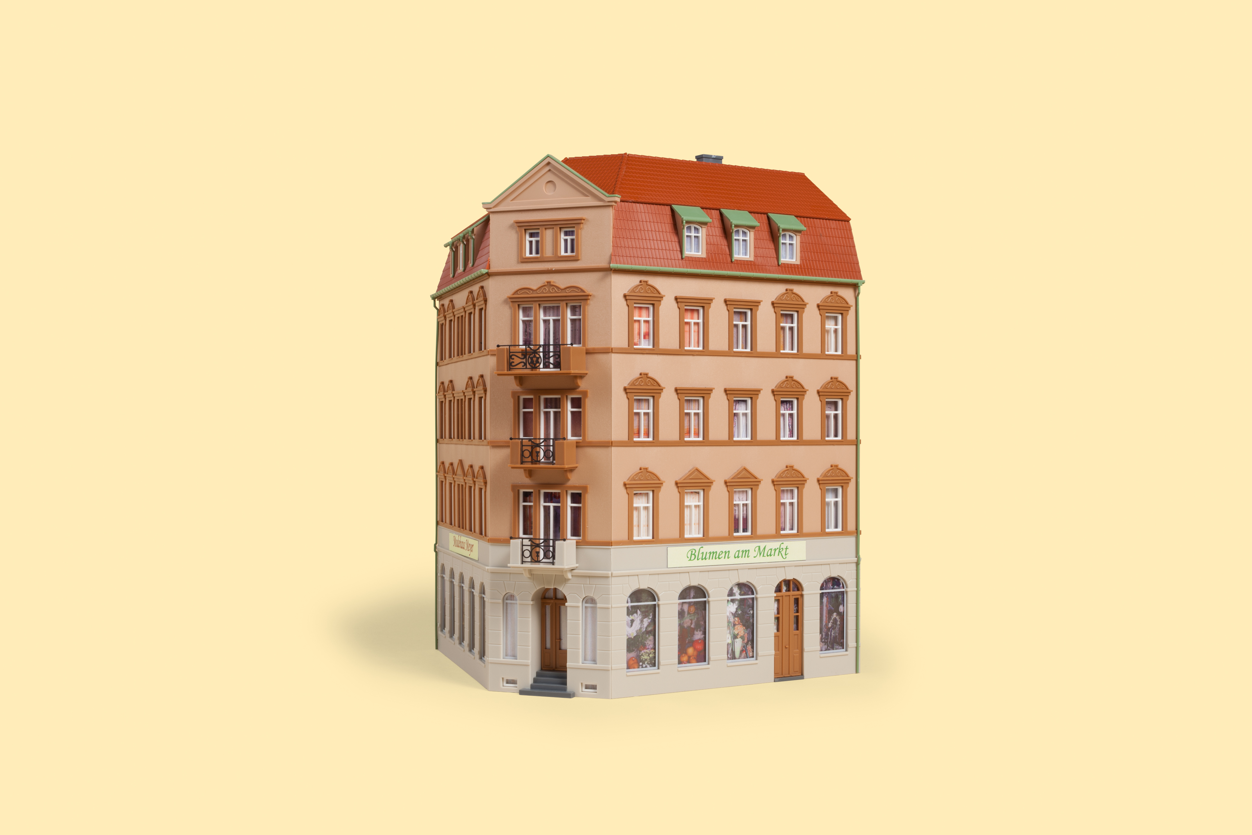 Das Besondere an diesem Gebäude ist die wahlweise Gestaltung im 75°, 90° und 105° Winkel. Alle Teile liegen bei. Die Geländer für die Balkone sind aus stabilem Karton in Lasercut-Technologie hergestellt. Bitte beachten Sie dazu unseren Basteltipp im Katalog oder unter www.auhagen.de.
