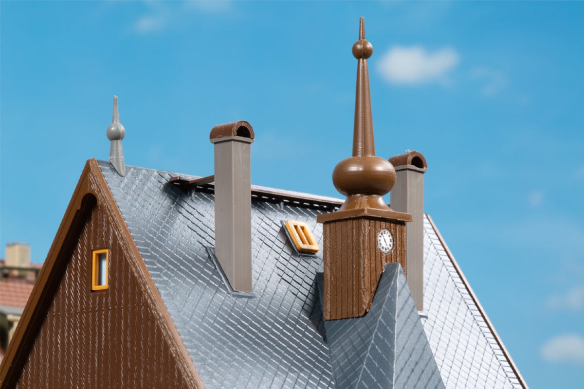 Schon fast märchenhaft wirkt dieses Fachwerkgebäude. Ursprünglich wurde es mitten auf dem Marktplatz als Rathaus erbaut. Heute braucht die Stadtverwaltung mehr Platz. Deshalb sind jetzt die Touristeninformation und ein Ladengeschäft darin untergebracht. Blumenkästen, Fahnenmast, Säulen mit Stahlrohr sowie eine Dekoration liegen bei.