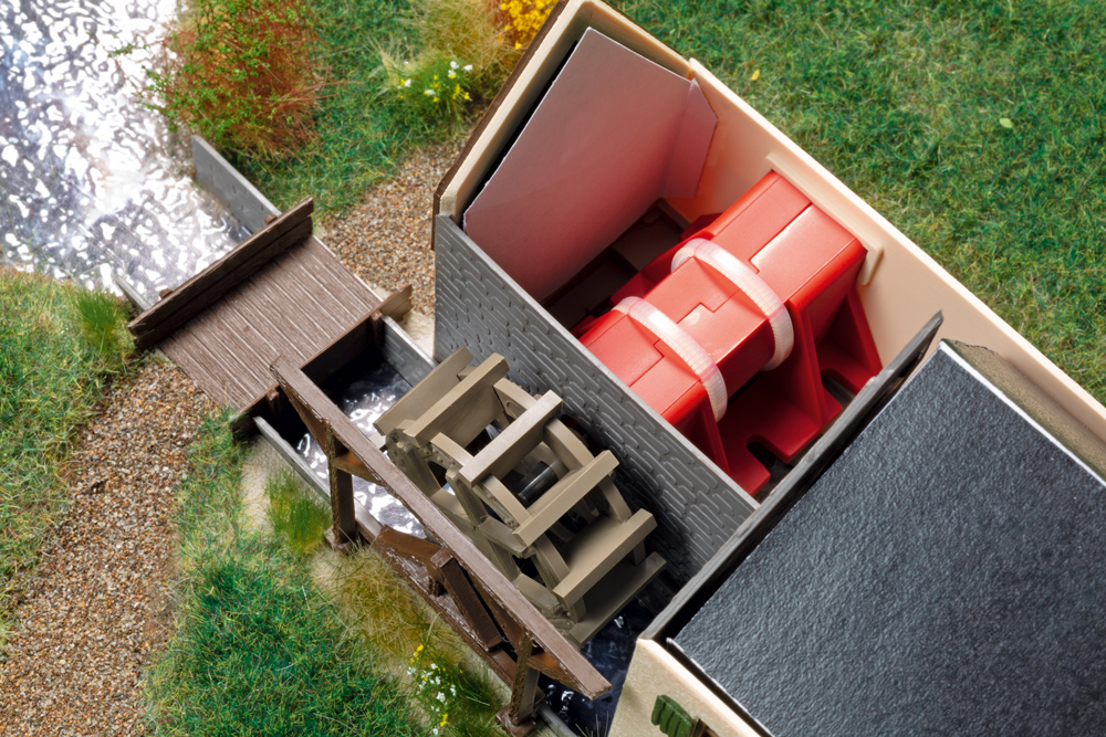 Alte Ölmu?hle - Unser beliebtes Modell der holzschindelgedeckten Ölmu?hle in historischer Architektur wurde fu?r den Einbau des Artikel 58 200 Motor neu u?berarbeitet. Mit Hilfe dieser optionalen Erweiterung kann während des Baus der Mu?hle diese unkompliziert mit einem elektrisch angetriebenen Wasserrad ausgestattet werden. Funktionsmodell ohne Motor – kann mit Artikel 58 200 Motor kombiniert werden.168 x 110 x 100 mm
