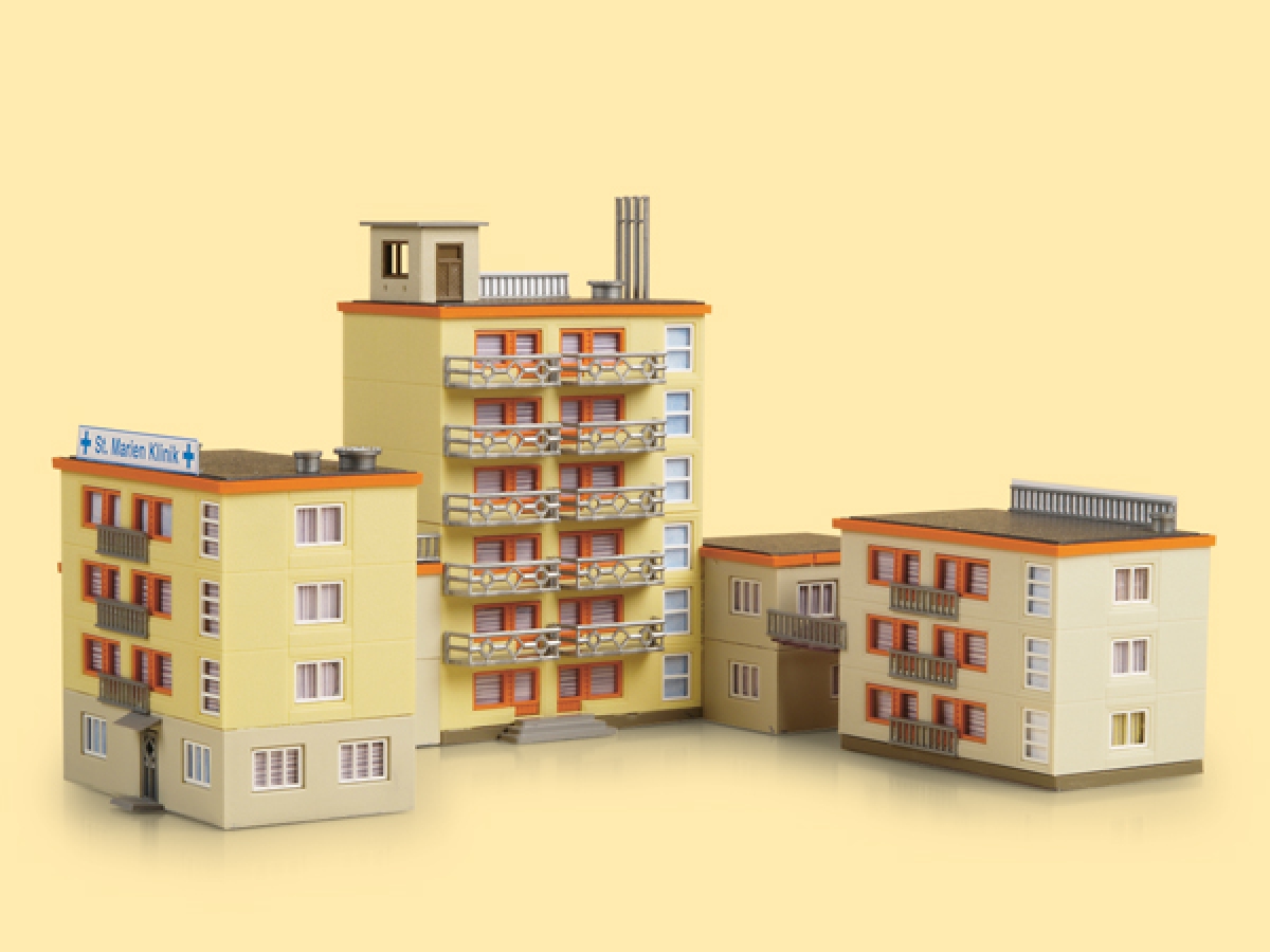 Diese Klinik wurde in den 1970er Jahren gebaut und saniert. Alle Gebäude sind einzeln aufstellbar. Mit unserem Art. 14 464 Wohnhäuser können Sie den Komplex erweitern.