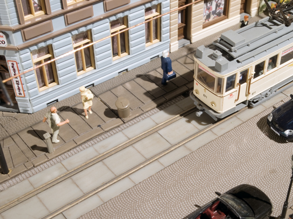 Besonders zur Gestaltung von Gleisanlagen der Straßenbahn geeignet.