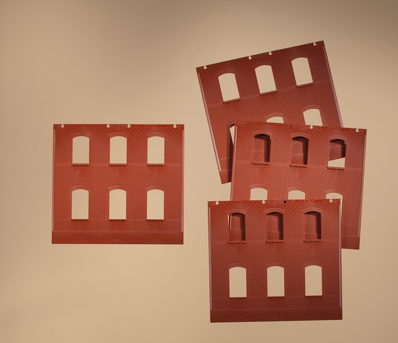 4 Wände mit Fensteröffnungen A und B ohne Zahnfries.